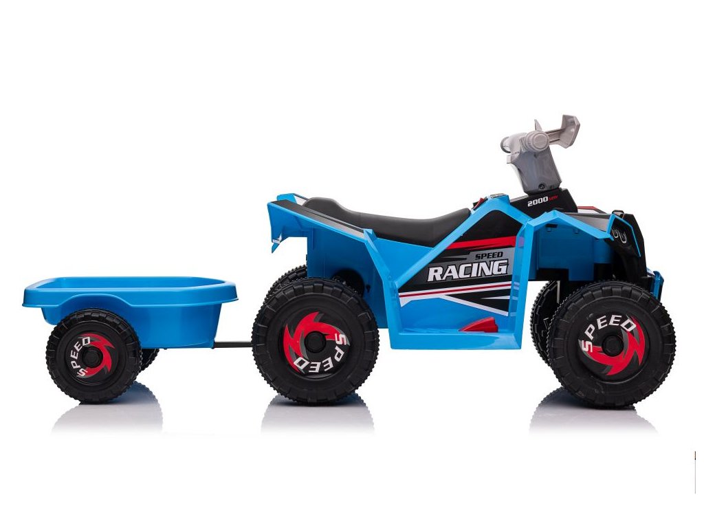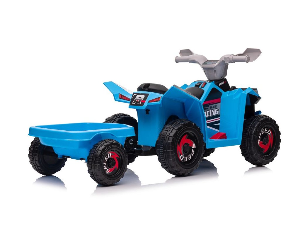 Dětská elektrická čtyřkolka s přívěsem + megafon 6V7Ah modrá