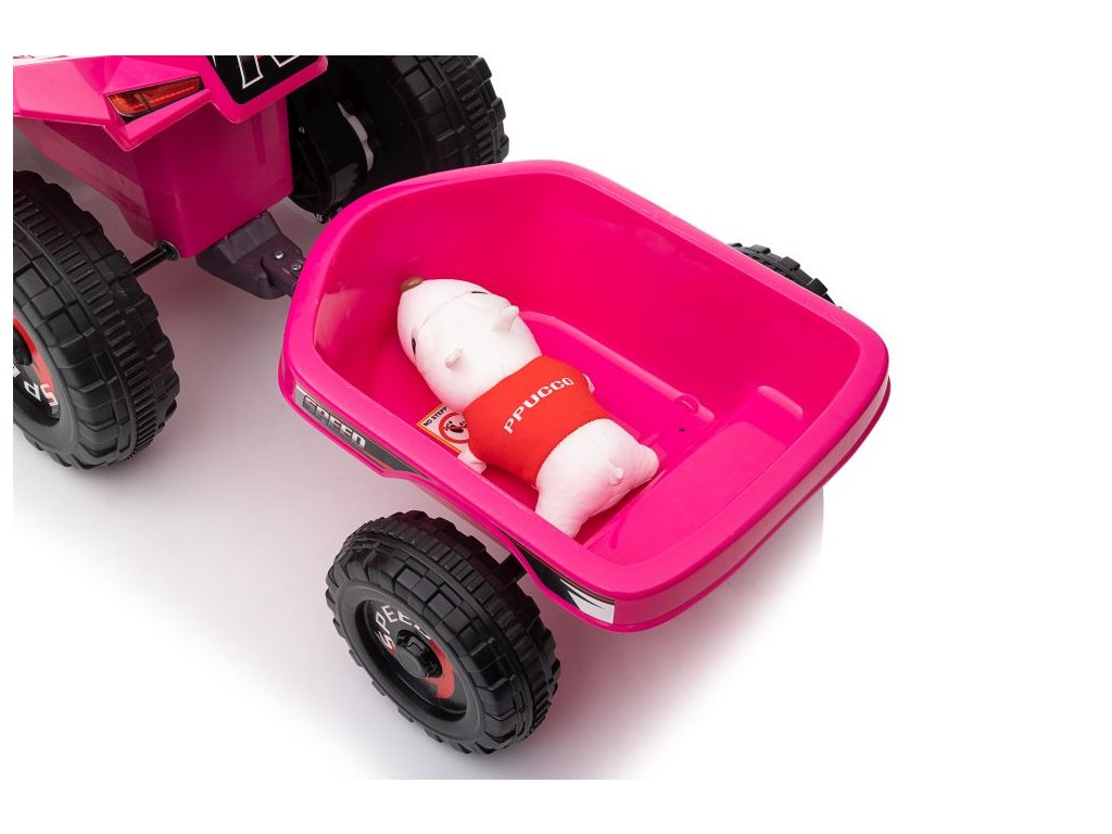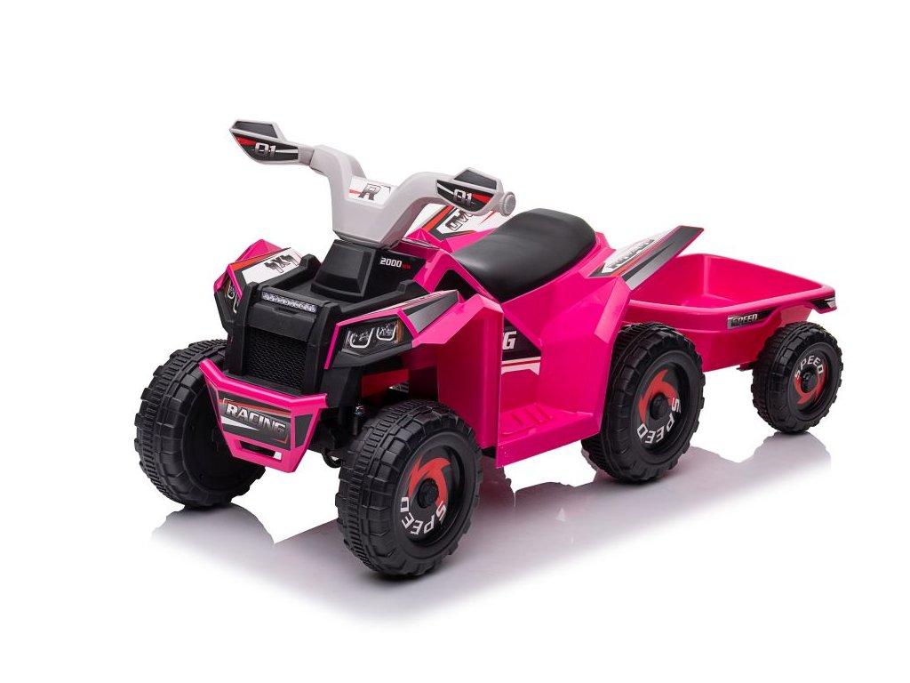 Dětská elektrická čtyřkolka s přívěsem + megafon 6V7Ah růžová