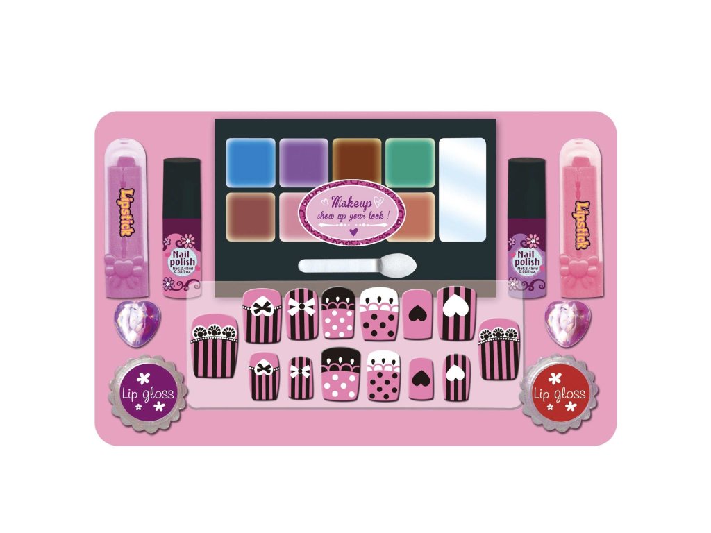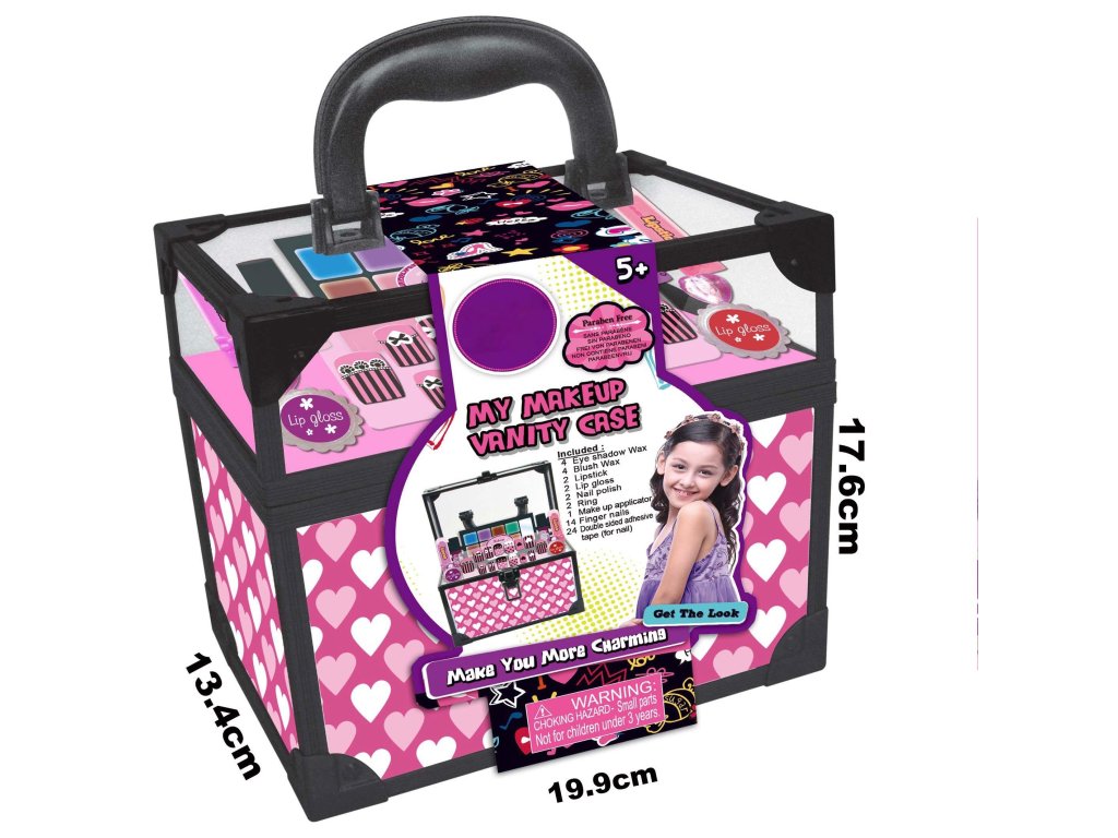 The children's cosmetic case is the perfect accessory for little ones who love to imitate their mothers. This pink case is filled with various cosmetic accessories that encourage creativity and let kids pretend to do makeup. It includes a range of colorful eyeshadows, lip glosses, and other cosmetic products. Everything is stored in a practical case with a handle for easy carrying and storage.