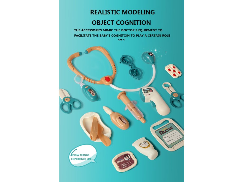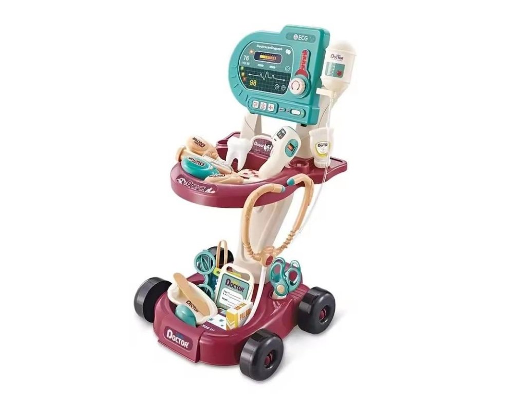 Children's Medical Trolley with EKG and Heartbeat Indicator Light, 24 pcs, Beige