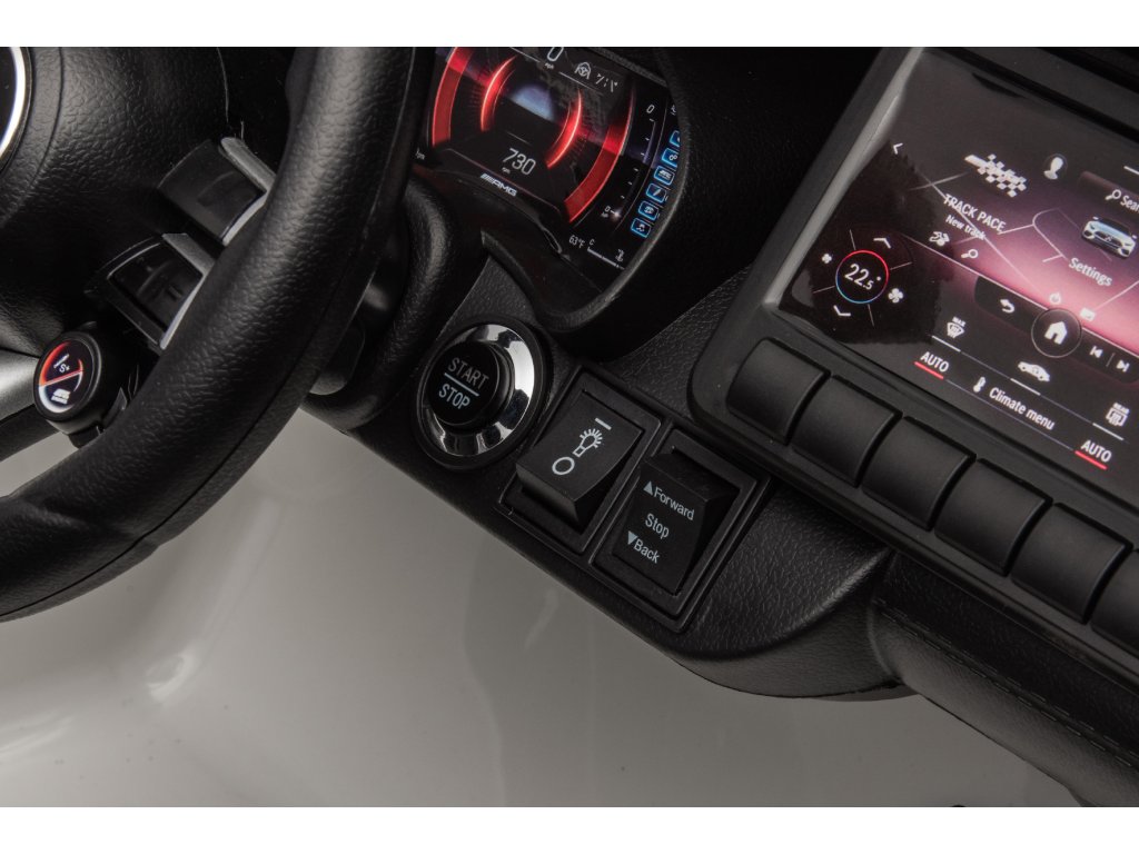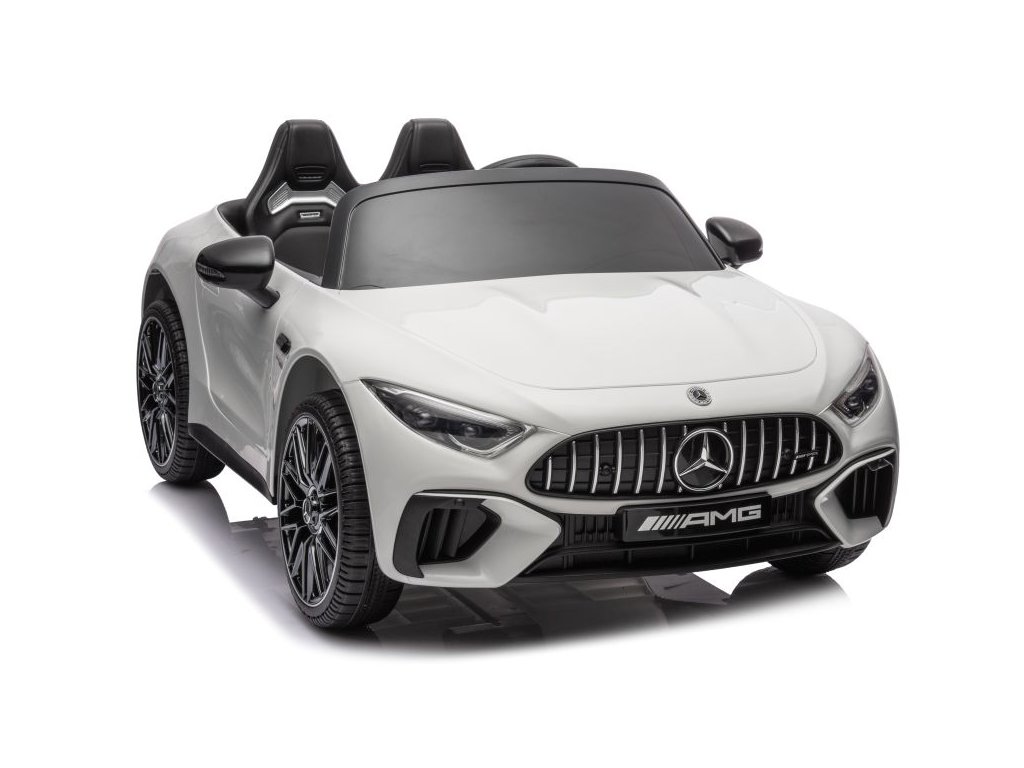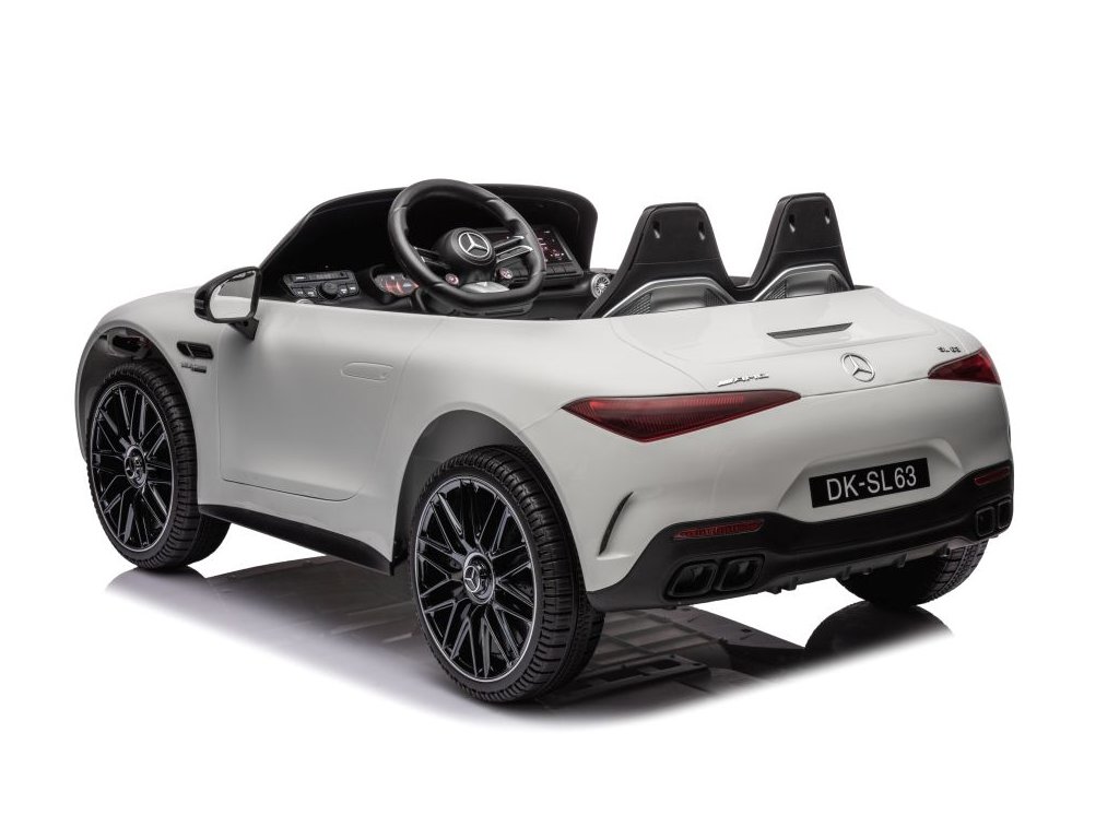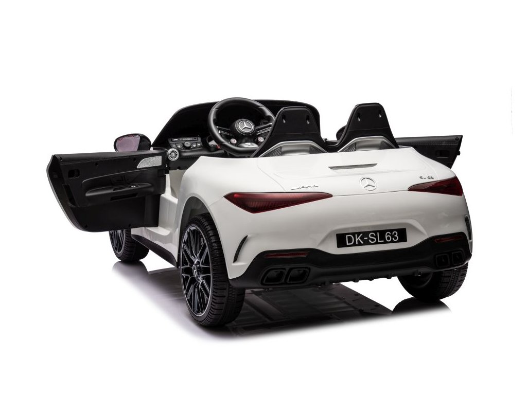 Licensed children's Electric ride on car Mercedes AMG SL63 comes with soft foam EVA wheels that are quiet and adapt to different types of terrain. The child sits in a comfortably shaped eco-leather seat and safety is provided by safety belts (5-point). The equipment includes front and rear LED lights and a music panel with Bluetooth, radio and USB and MP3 inputs. Electric ride on car has smooth start and stop. The vehicle may be driven entirely independently by the child, but parents can intervene in the ride using the remote control. The remote control is equipped with a safety Stop button that immediately stops the vehicle and turns off all its functions. Technical specifications: - Power: 4x200 W - Battery: 24V 7Ah - Remote control: 2.4 GHz - Transmission: 3 speeds - Speed: 3–8 km/h - Vehicle dimensions: 124.5 x 74.5 x 49.5 cm - Weight: 20 kg - Maximum load: 35 kg Equipment: - Soft foam EVA wheels - Seat made of soft eco leather - Safety belts - Front and rear LED lights - Music panel: Bluetooth, radio, USB input, MP3 - Backlit dashboard - Opening doors Note: The lifespan of batteries and accumulators that may be part of the product is set to six months, as they are consumable materials subject to normal wear. Technical parameters may change at any time without prior notice. The images shown are for illustrative purposes only.Additional parameters
