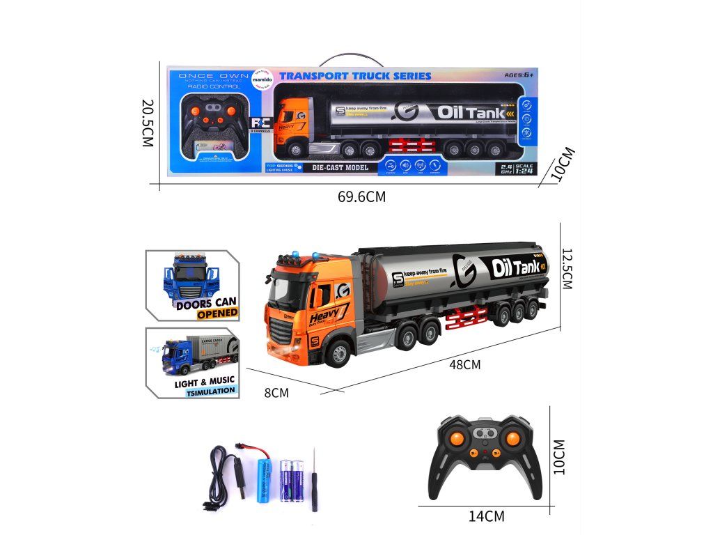 Detailně zpracovaný RC kamion s cisternou v měřítku 1:24 potěší všechny malé fanoušky nákladních vozů. Model o délce 48 cm je vyroben s důrazem na realistické detaily, jako jsou otevírací dveře, světelné efekty a zvuk motoru.