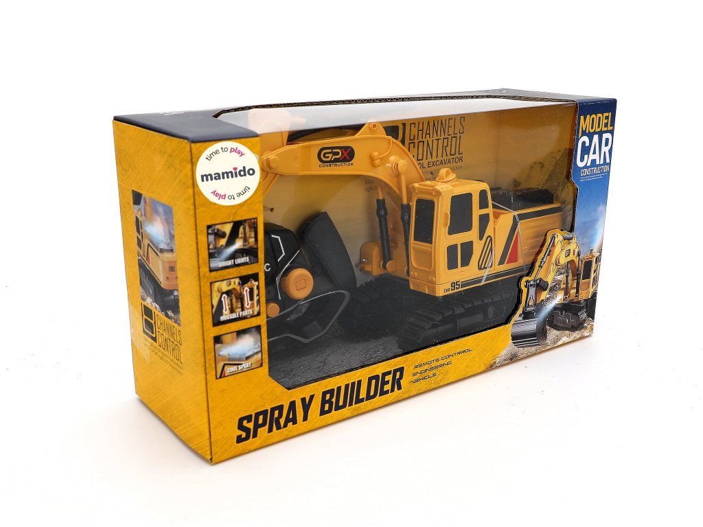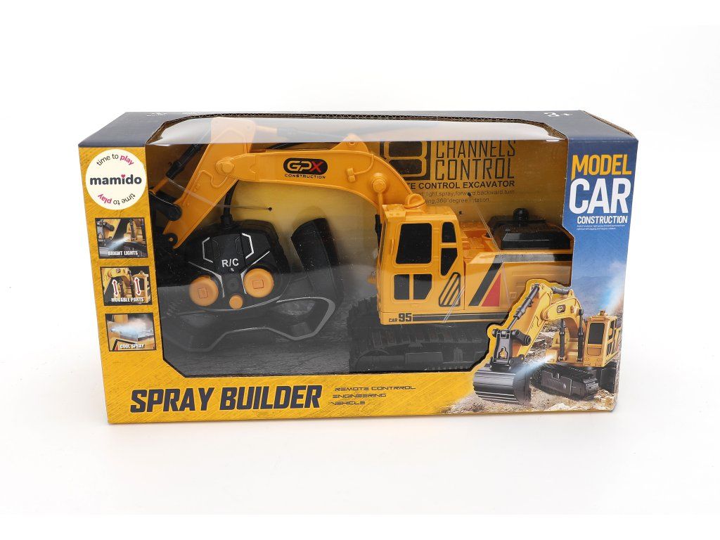 Model nabízí 3kanálové ovládání, díky kterému lze bagr intuitivně řídit. Při jízdě a práci ramene se rozsvítí přední světla a z výfuku se po přidání vody začne uvolňovat efektní „kouřová“ mlha, která dodá hře realistickou atmosféru. Pásový podvozek umožňuje stabilní pohyb na různých površích a celková konstrukce je navržena pro plynulou a zábavnou jízdu.
