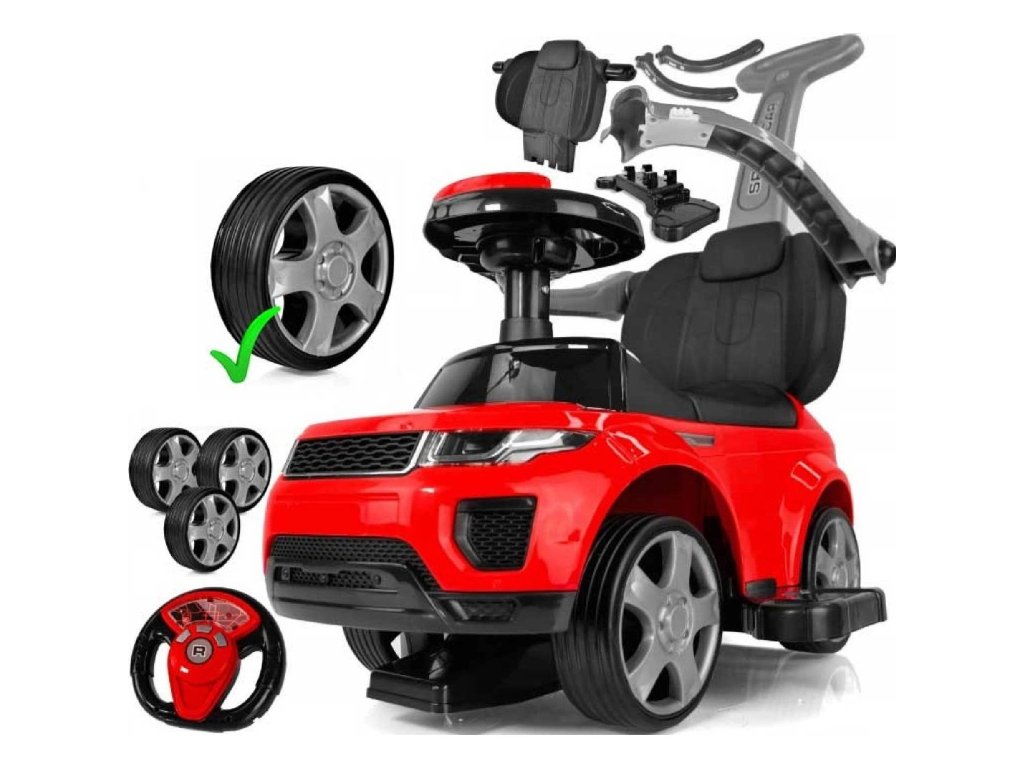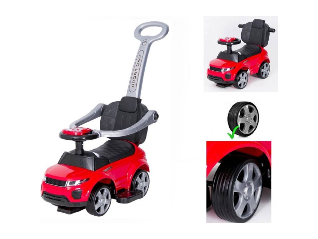 Odrážedlo Sport Car s vodící tyčí 3v1 GUMOVÁ kola červené